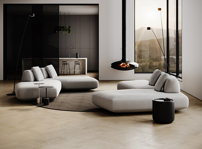 Единое полотно пола создаёт общее пространство, которое плавно перетекает из одной зоны в другую.
