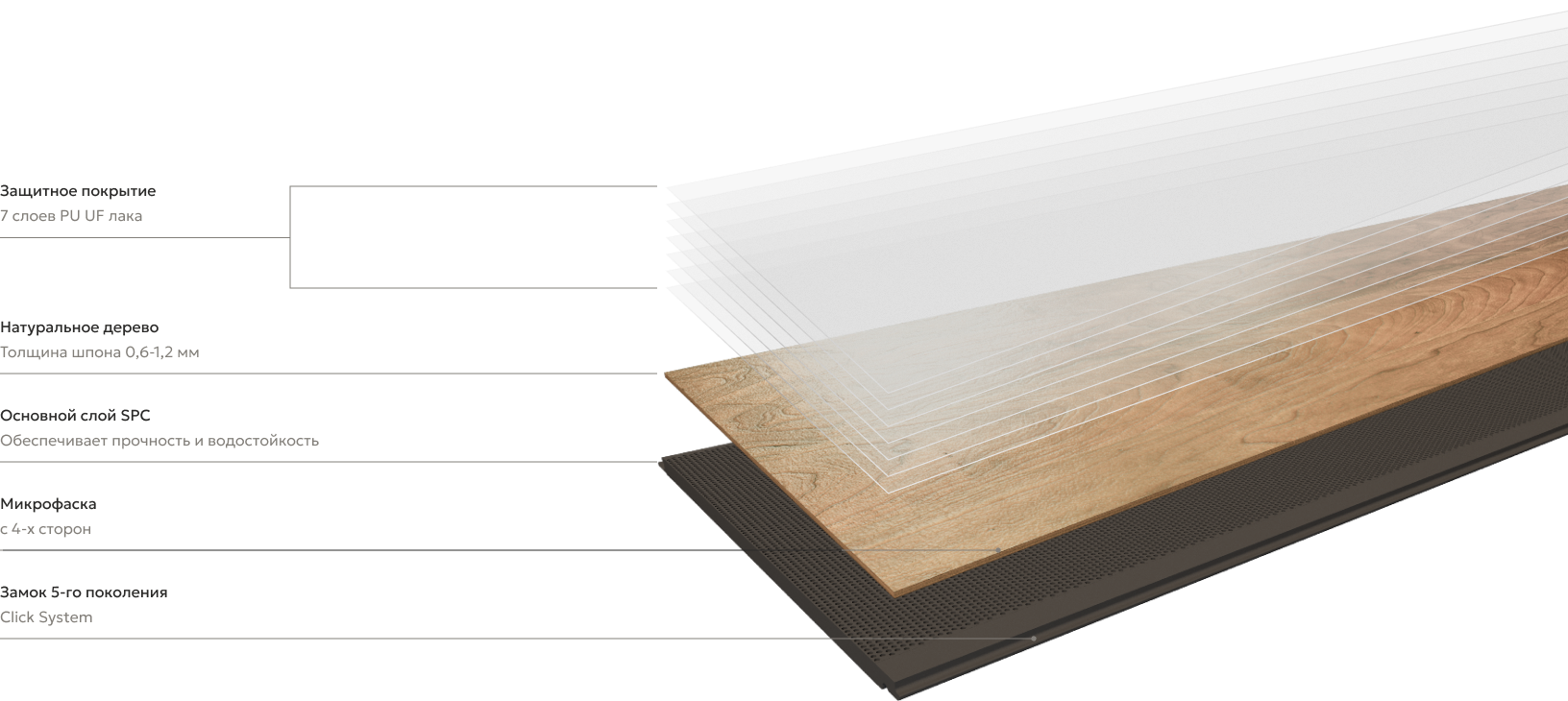Инновационный пол со слоем ценной породы дерева на основе SPC-плиты