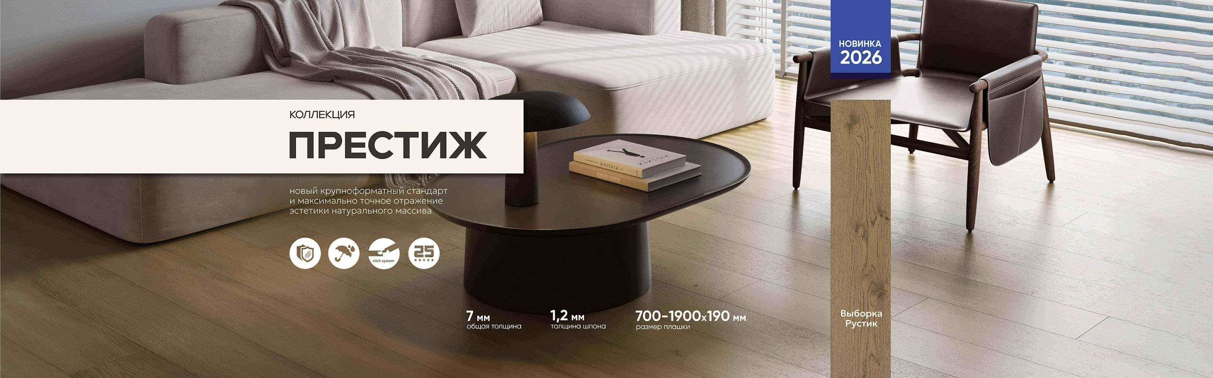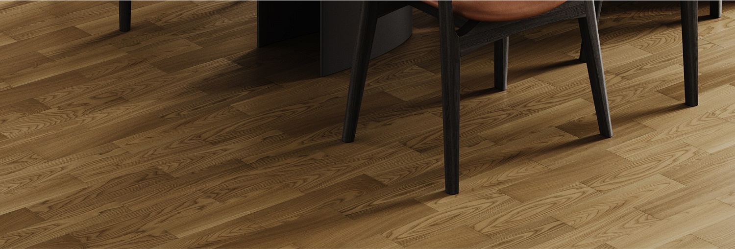 Привычный формат разнодлинных плашек для палубной укладки. В коллекции нет сложных узоров, как в «ёлочке» или «шевроне», — только прямые линии, строгая геометрия и универсальность, которая делает пространство пола максимально понятным.
