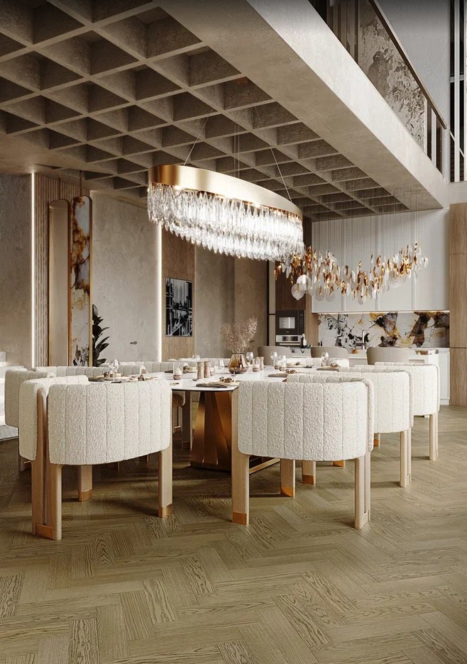 Первое впечатление влияет на уровень доверия. Пространство с тщательно подобранным полом вызывает уважение, даже если посетитель не может объяснить, почему. Экзотический кварцевый паркет здесь — часть общей архитектуры бренда: премиальной, безукоризненной, без лишнего шума.