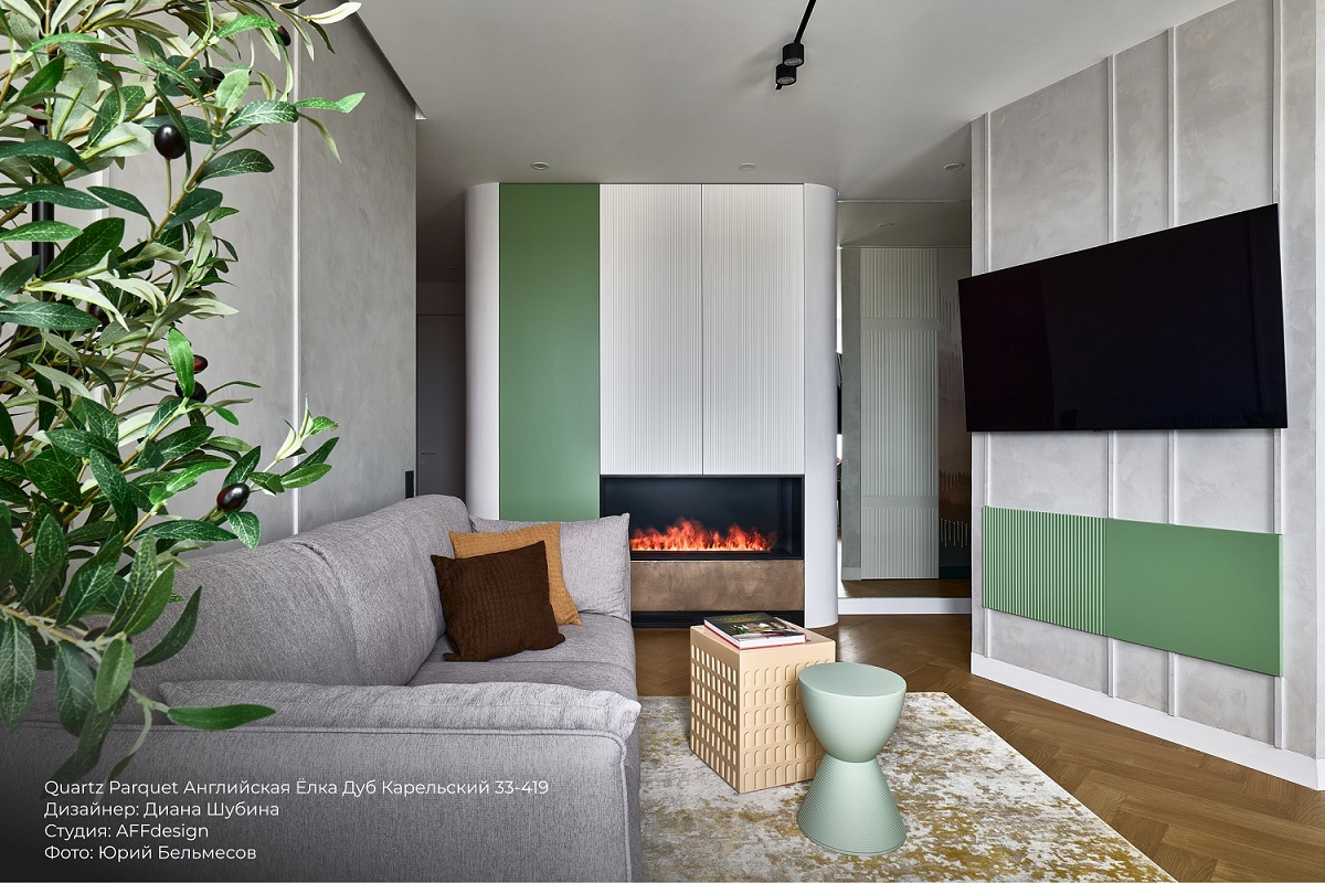 Кварцпаркет создаёт комфорт в любое время года — даже когда пламя в камине уже погасло.