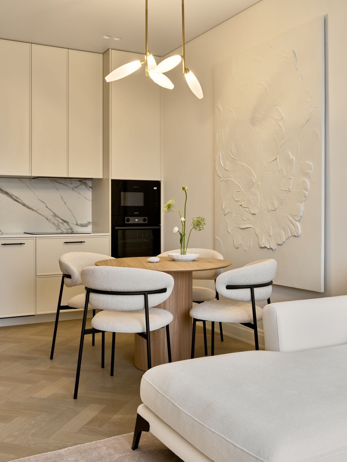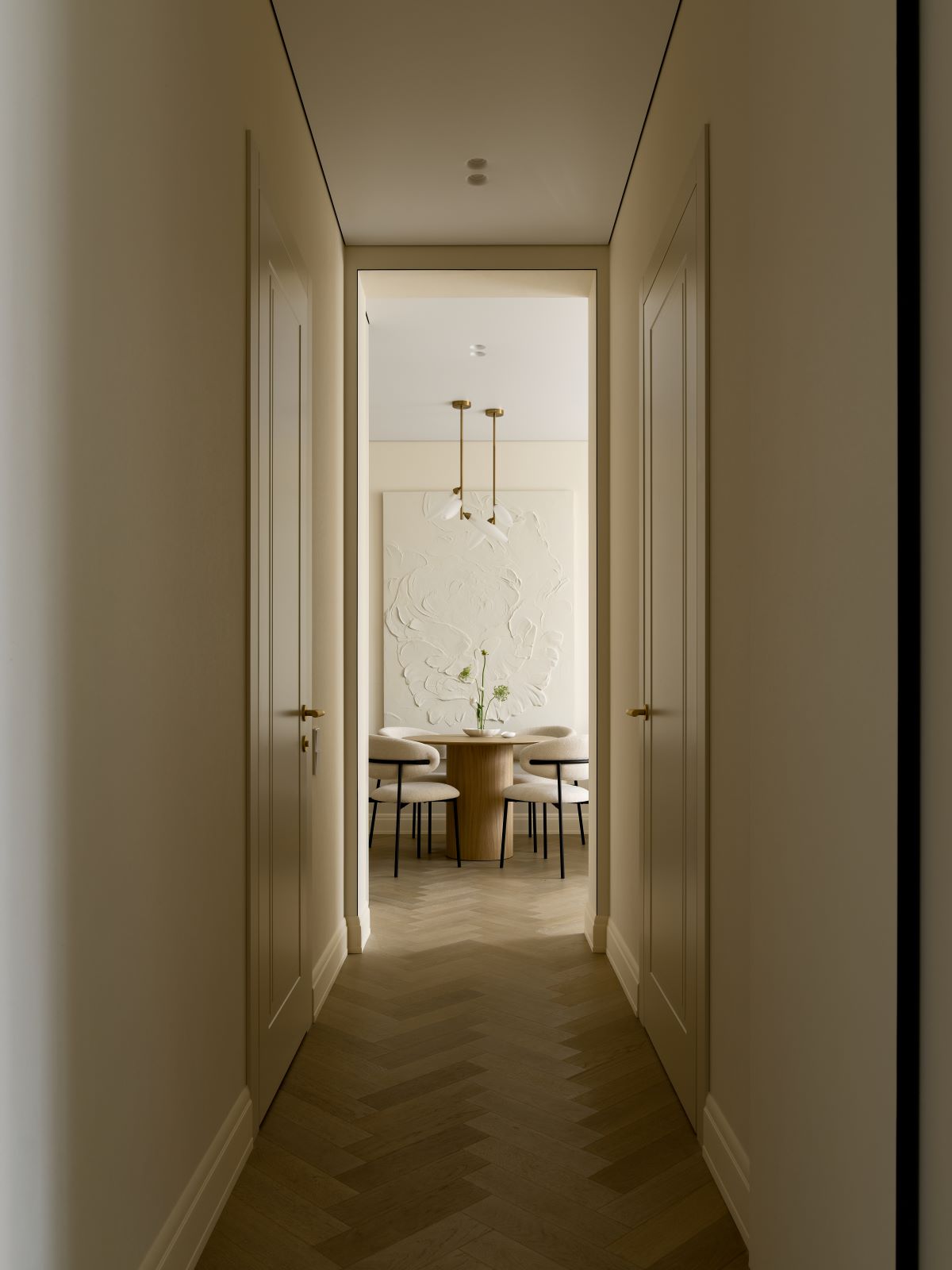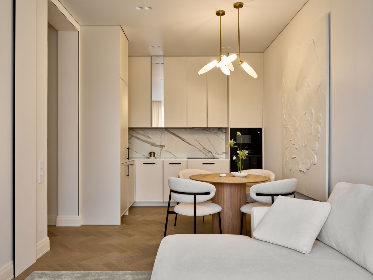 Эта квартира — для пары, которая сейчас живет и работает на Севере, а в город они приезжают в отпуск. Мы сделали планировку и интерьер так, чтобы им было удобно каждый день. Простая планировка, спокойные материалы, теплые оттенки, никаких сложных перепланировок — зато максимум комфорта. Здесь всё на своём месте, ничего лишнего, и в этом её настоящая ценность. Простота — это не скучно, это про то, что дом служит вам.